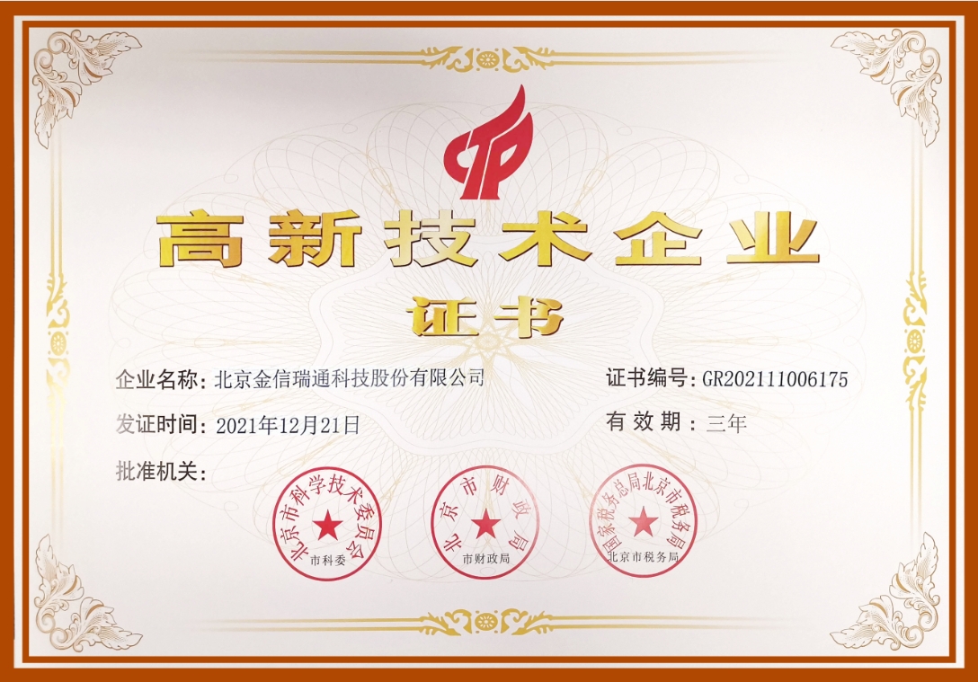 喜報:金信瑞通榮獲中關村高新技術企業(yè)稱號并獲得多項5G軟...